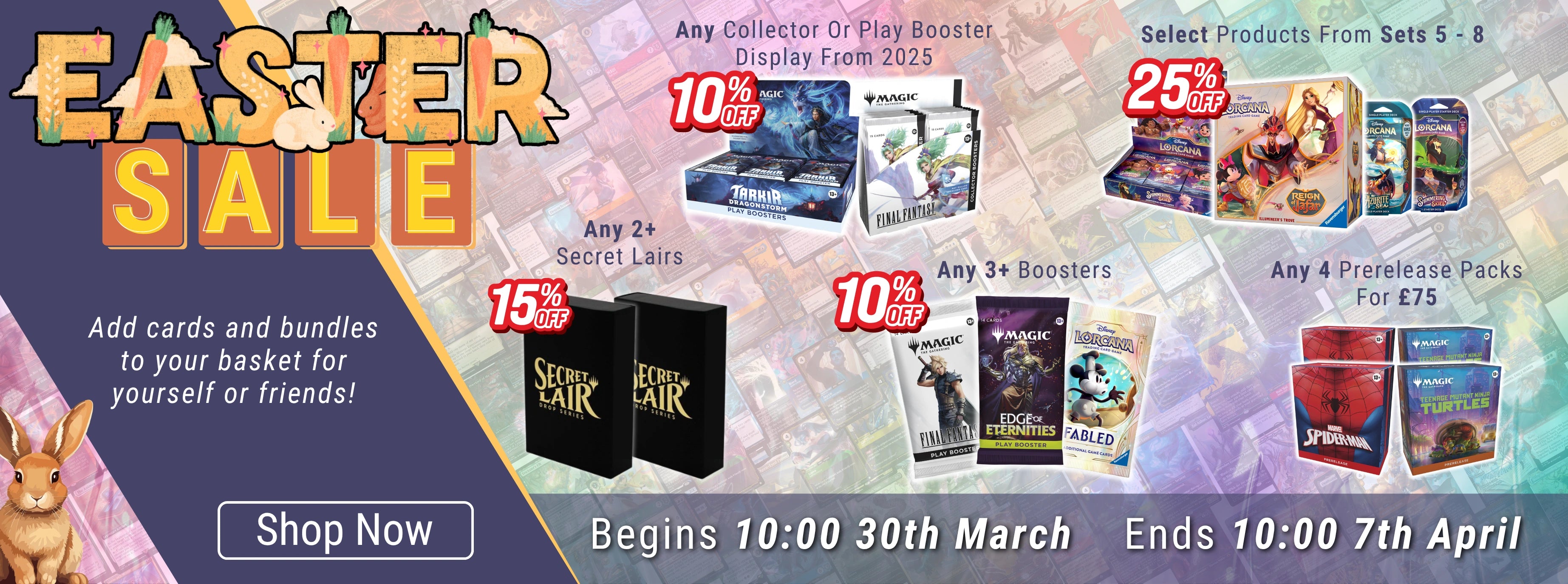 Axion Now is a trusted UK based seller of Lorcana and Magic: The Gathering cards, accessories and other popular items. On our website you can choose from a wide selection of mint condition cards, pre-order new sets or simply browse the list of all cards on the site to find that something special. We always have a great selection of cards in stock, including boosters and commander decks.