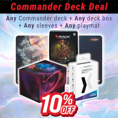 Ever wanted to pick up all of the accessories required to go with your Commander deck? Now you can! This Commander Deck Deal is perfect of equipping yourself with everything required to play a game of Commander.